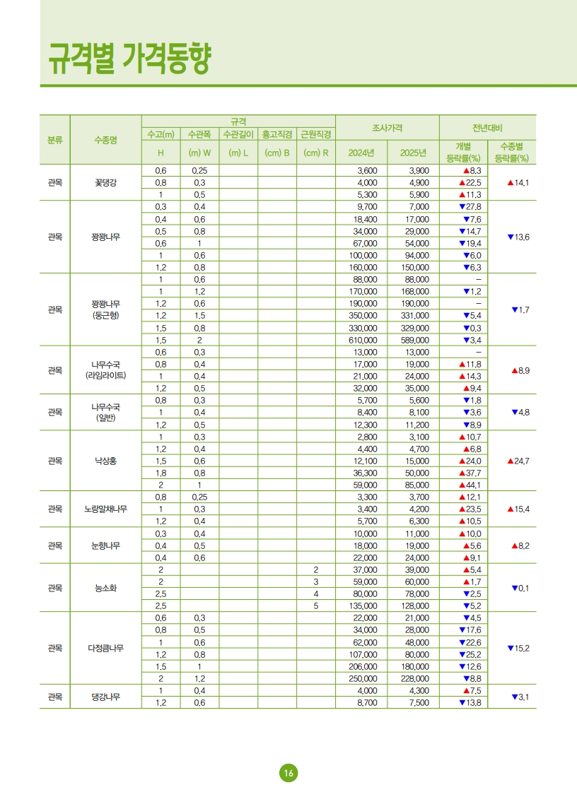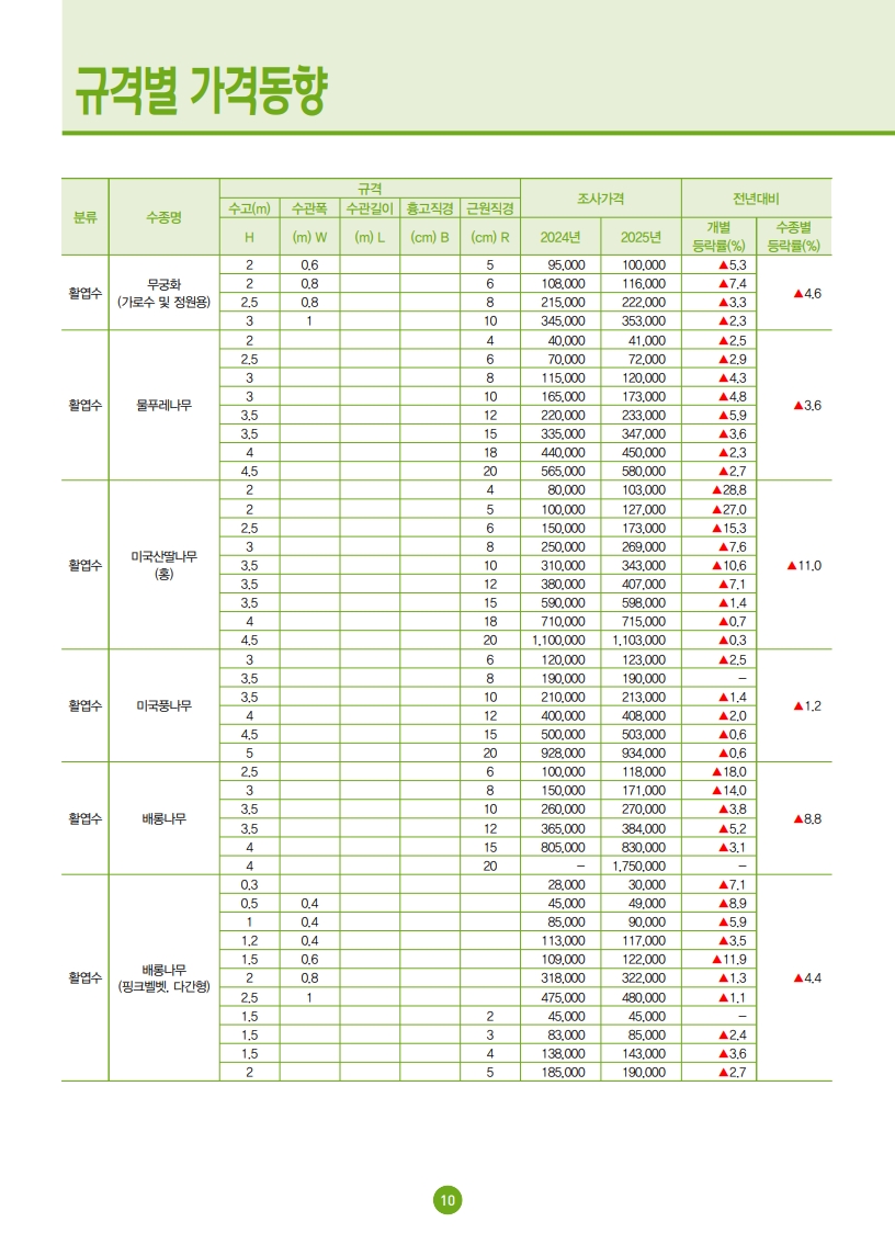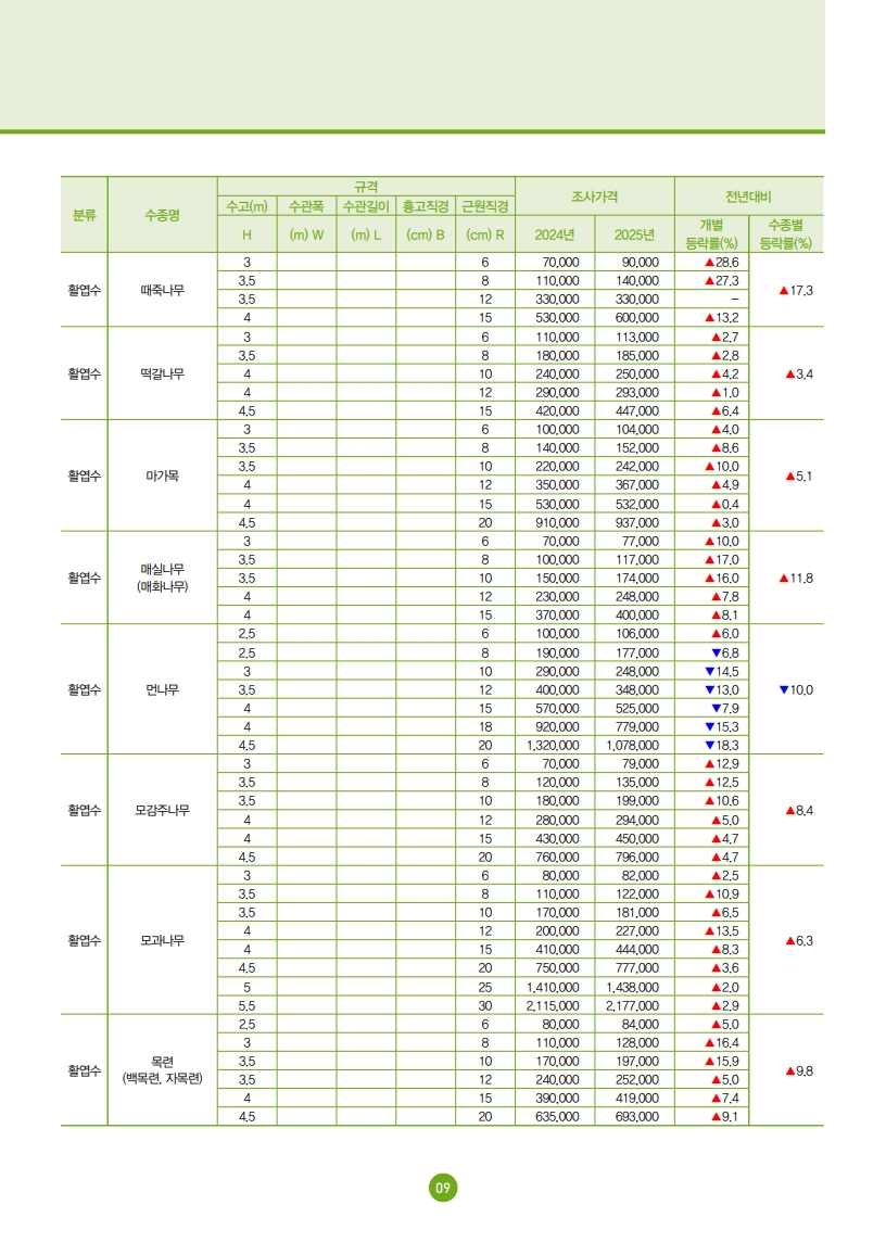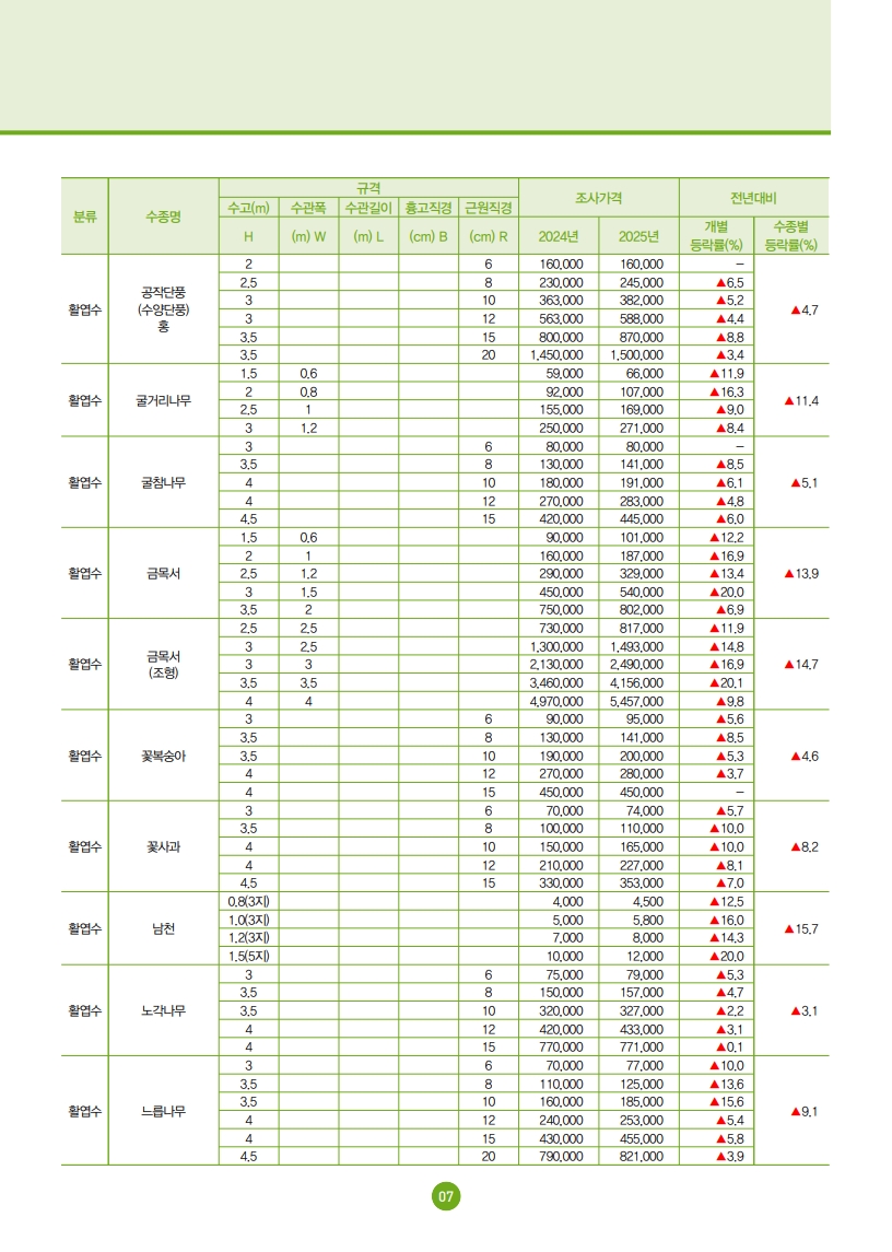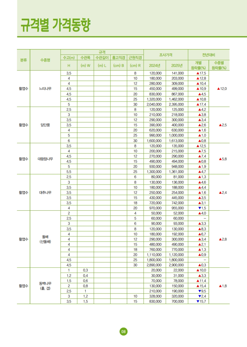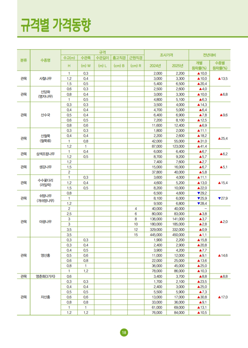 한국농촌경제연구원에서 2025년 12월 4일자로 임업관측(조경수)에 대한 가격이 발표되어 알려드립니다. 업무에 참고하시기 바랍니다.